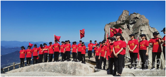據(jù)了解,天柱山風(fēng)景區(qū)當(dāng)天舉行了“立天柱之巔·燃愛國(guó)之情”活動(dòng)。此次活動(dòng)由天柱山風(fēng)景區(qū)組織,潛山各行各業(yè)共72名青年參加,統(tǒng)一佩戴黨徽,身穿“我愛你中國(guó)”紅色T恤,佩戴“我愛你中國(guó)”紅色口罩,佇立在天柱山第二高峰1426米的天池峰之巔,手握紅旗,告白祖國(guó),歌唱祖國(guó),齊祝祖國(guó)繁榮昌盛,國(guó)泰民安。