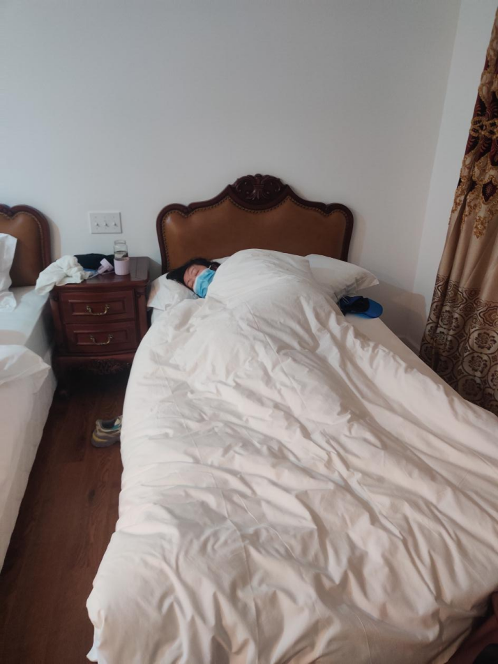 28日晚九點多,入住煉丹湖接待中心的游客萬女士,突然感覺渾身發(fā)燙,經(jīng)體溫測量高燒39.6度,她的愛人謝先生急切地向接待中心求助。接待中心工作人員立即向煉丹湖執(zhí)勤點景區(qū)綜合執(zhí)法大隊方鑫求助,方鑫一邊向指導員匯報緊急狀況,一邊了解游客情況。謝先生說:“我們來自合肥,和家人一行8人來天柱山旅游,沒有疫情高風險地區(qū)旅居史,也沒有與疫情防控地區(qū)人員接觸過,在游客中心測了體溫掃了安康碼和行程碼,夜晚入住煉丹湖接待中心。妻子下午感覺頭腦有點昏沉,當時沒有太在意,想著晚上在酒店好好休息就會恢復。但剛剛,身體突然發(fā)熱發(fā)燙實在難以承受,急切中向接待中心發(fā)出求助”。
