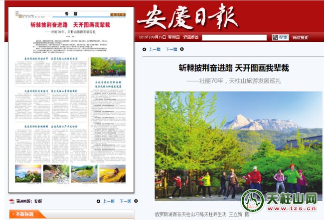 金秋的風(fēng),滿載著收獲的氣息,親撫著天柱山的滿目錦繡。從養(yǎng)在深閨,到走出國門,從步履蹣跚到超邁前行,天柱山以全新的面貌和累累碩果向新中國成立70周年獻(xiàn)禮!